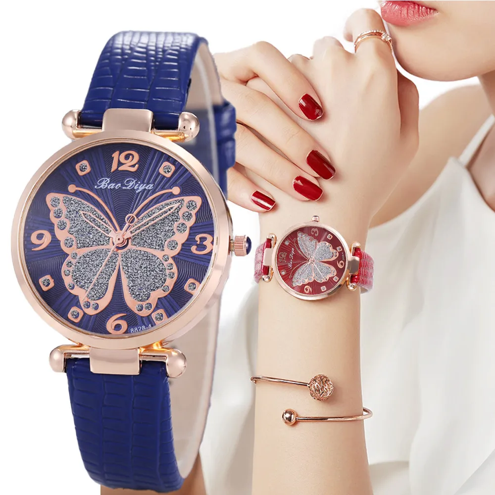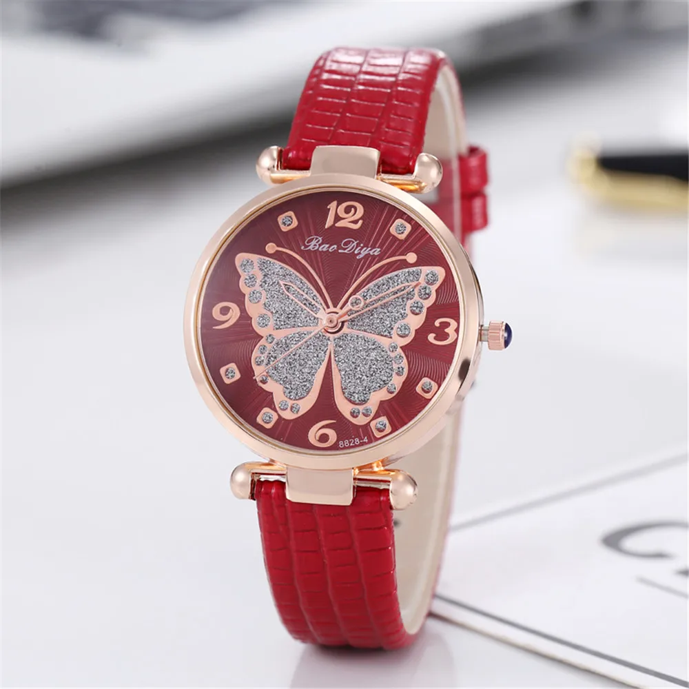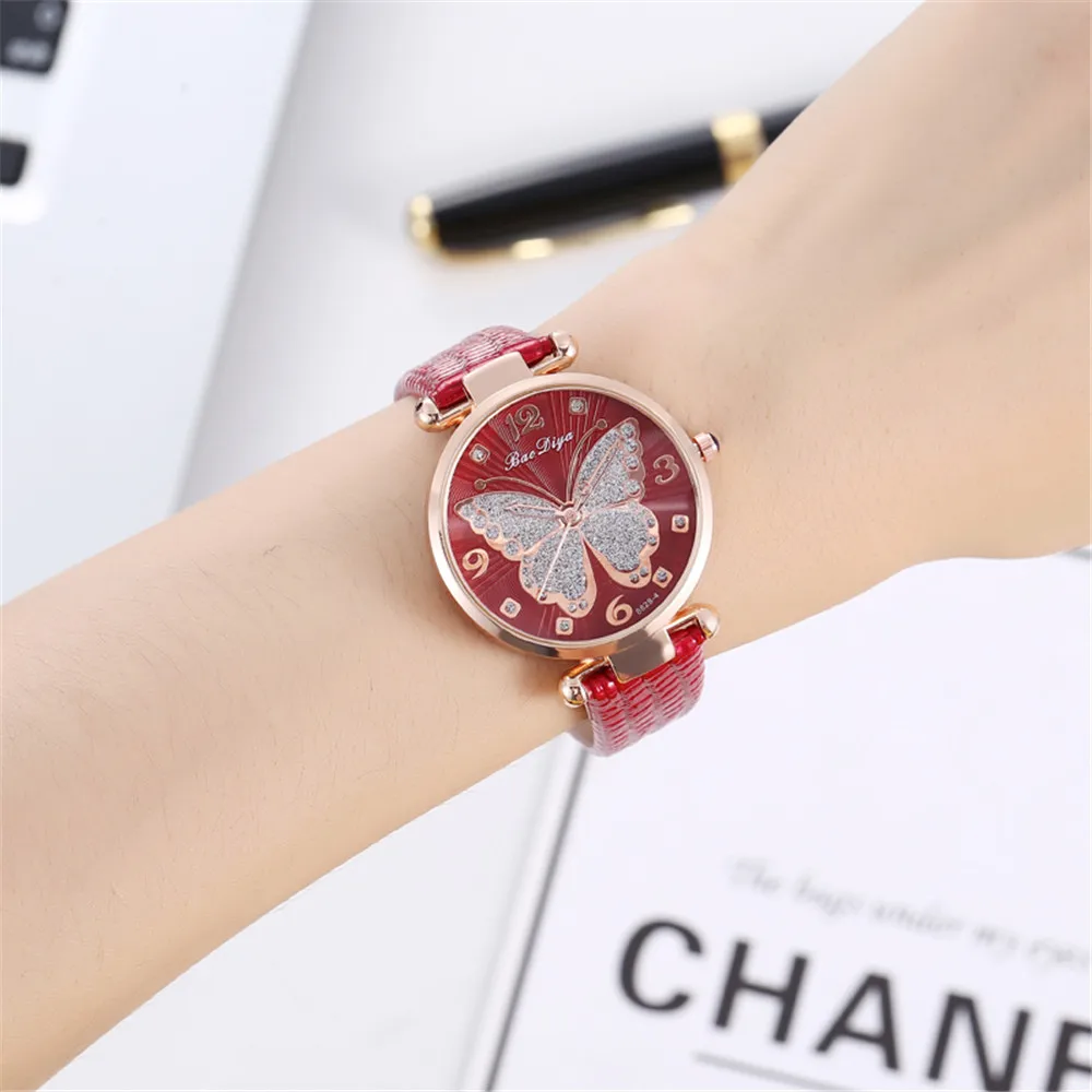 Butterfly Diamond Dial Design Women Quartz Watches Fashion Casual Ladies Wristwatches Simple Woman Leather Clock Montre Femme