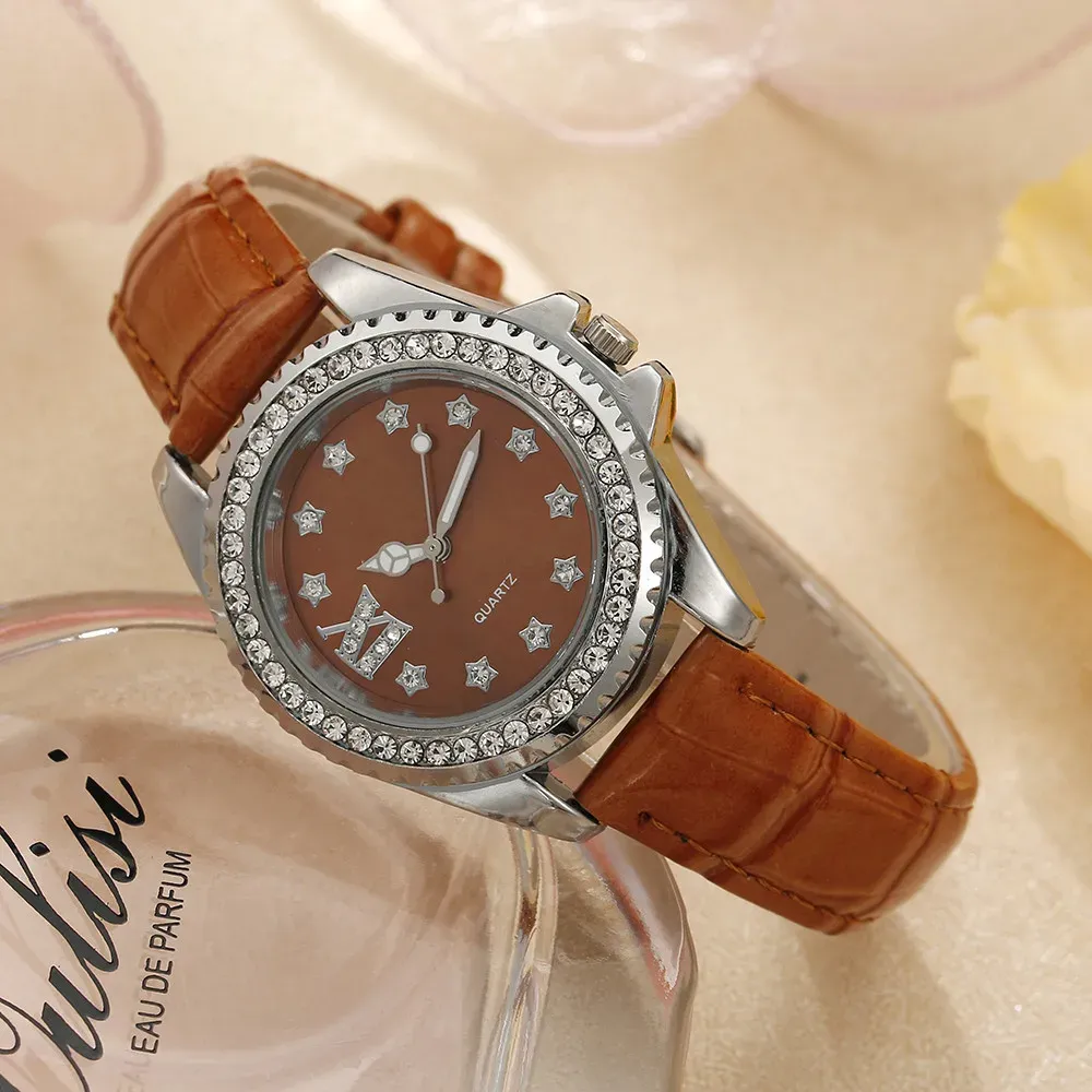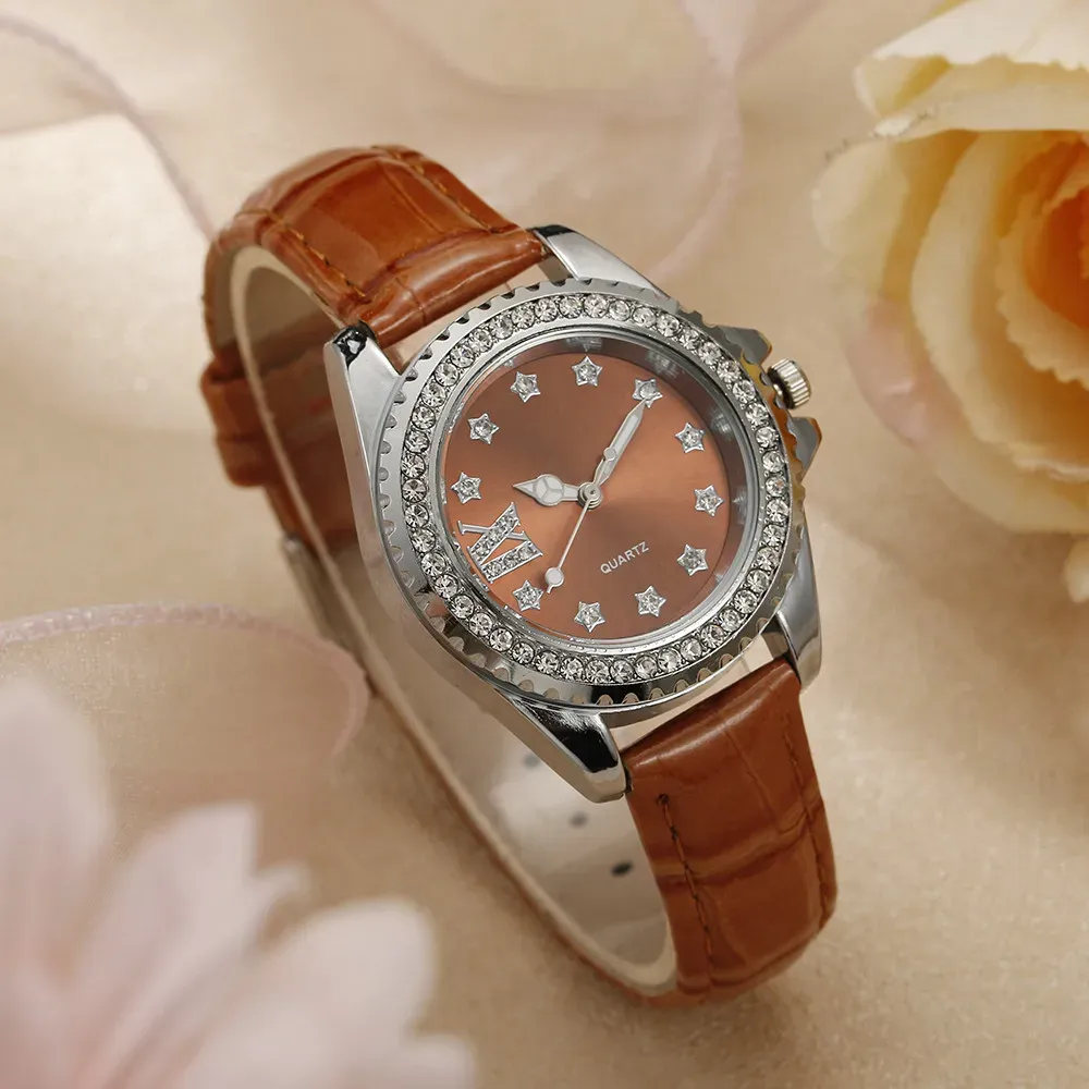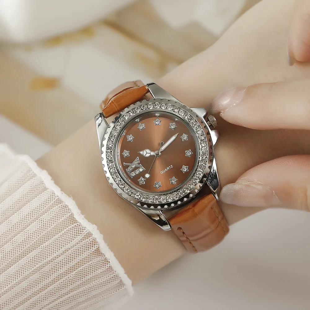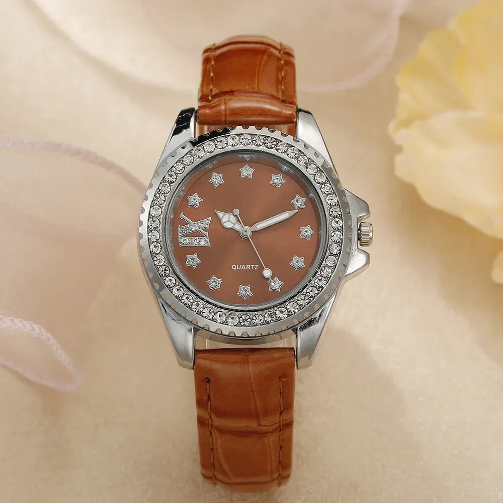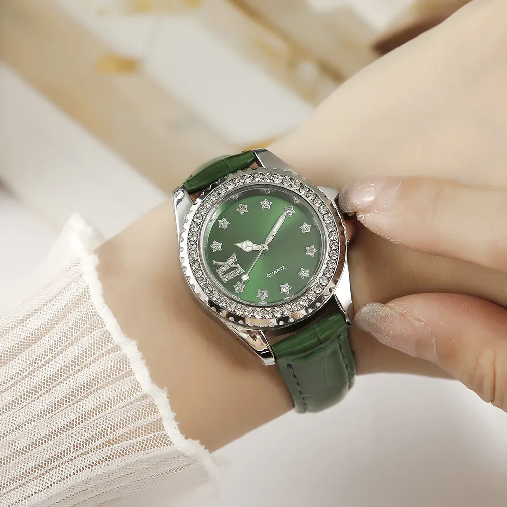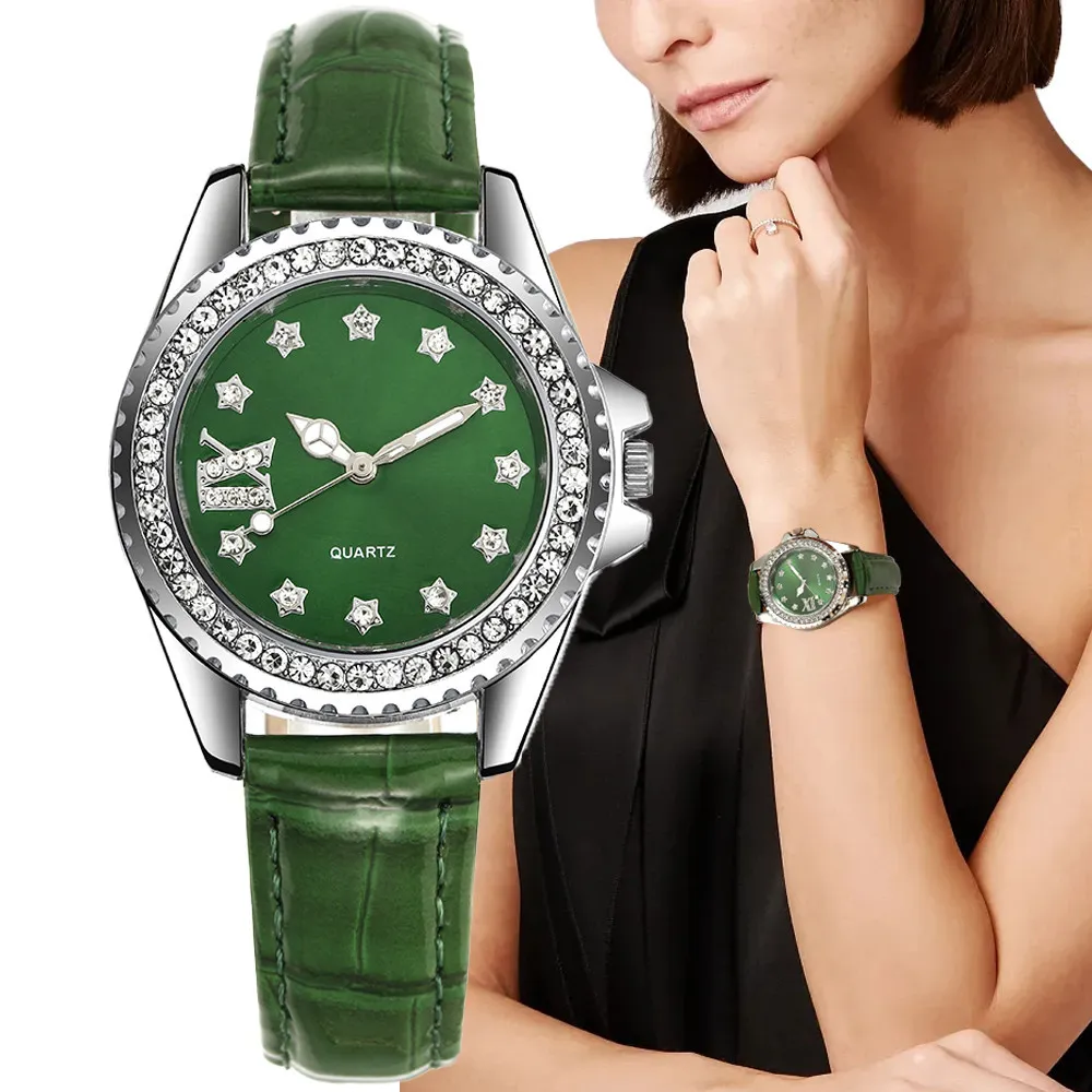 Ladies Luxury Brand Watch Fashion 2023 Roman Diamond Women Quartz Watch Casual Green Leather Dress Clock Watches
