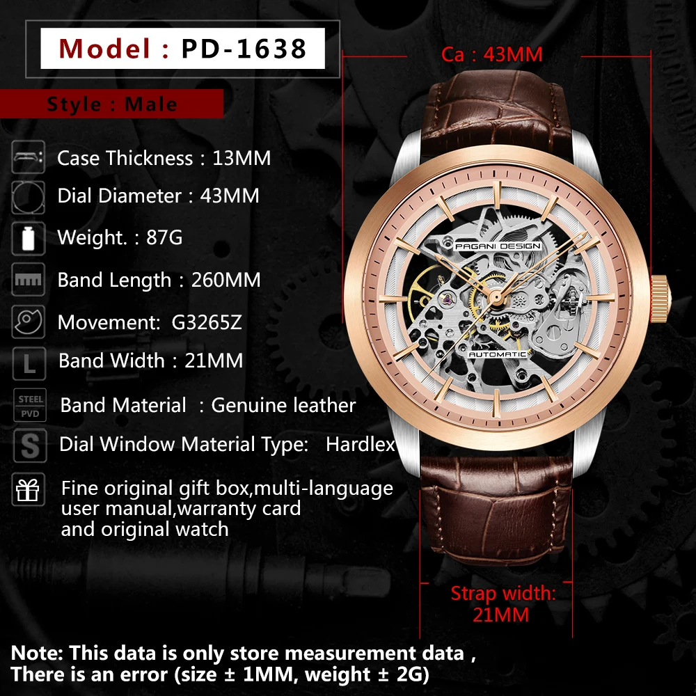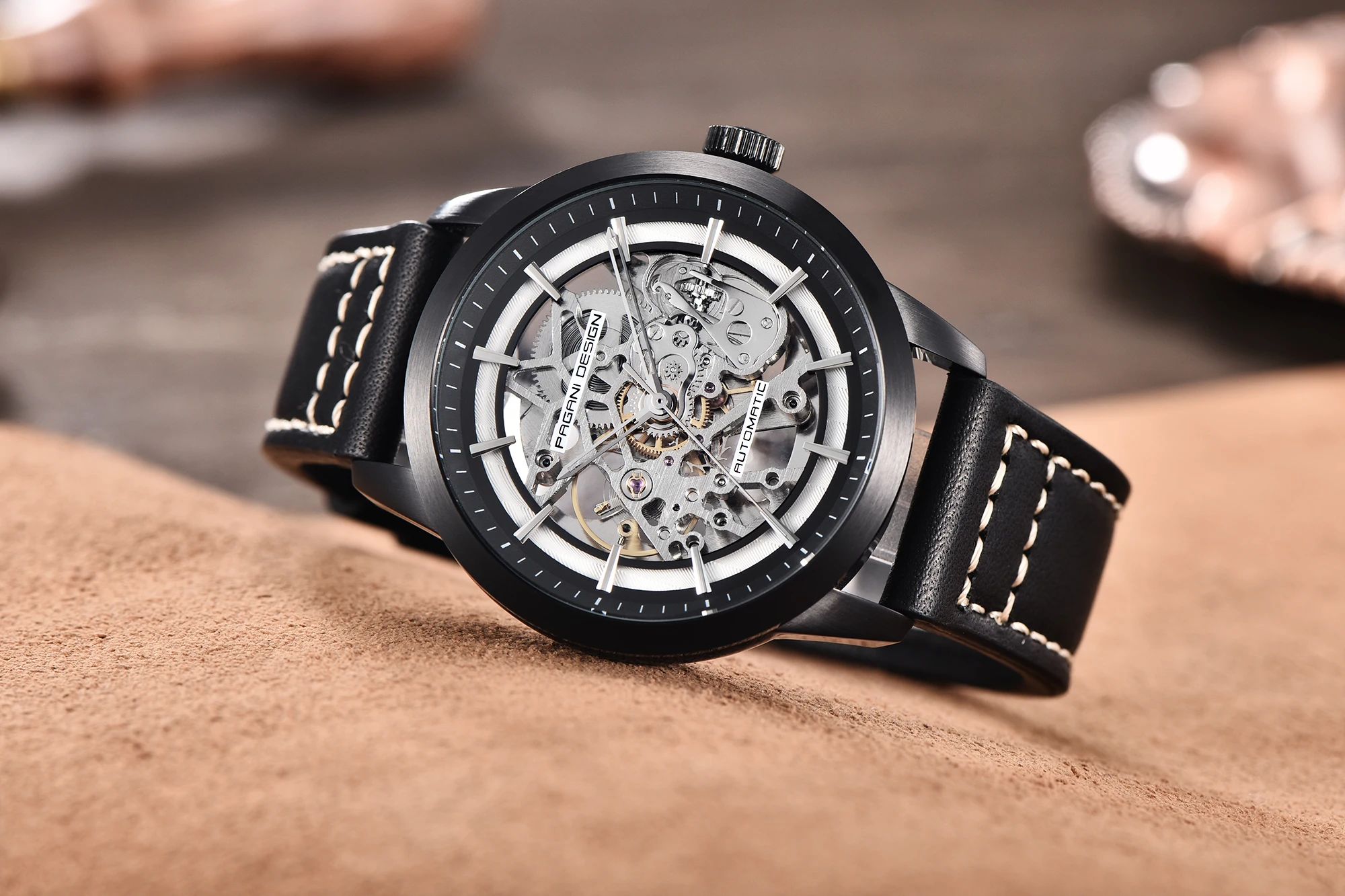 PAGANI DESIGN Brand Hot Sale 2023 Skeleton Hollow Leather Men's Wrist Watches Luxury Mechanical Male Clock New Relogio Masculino