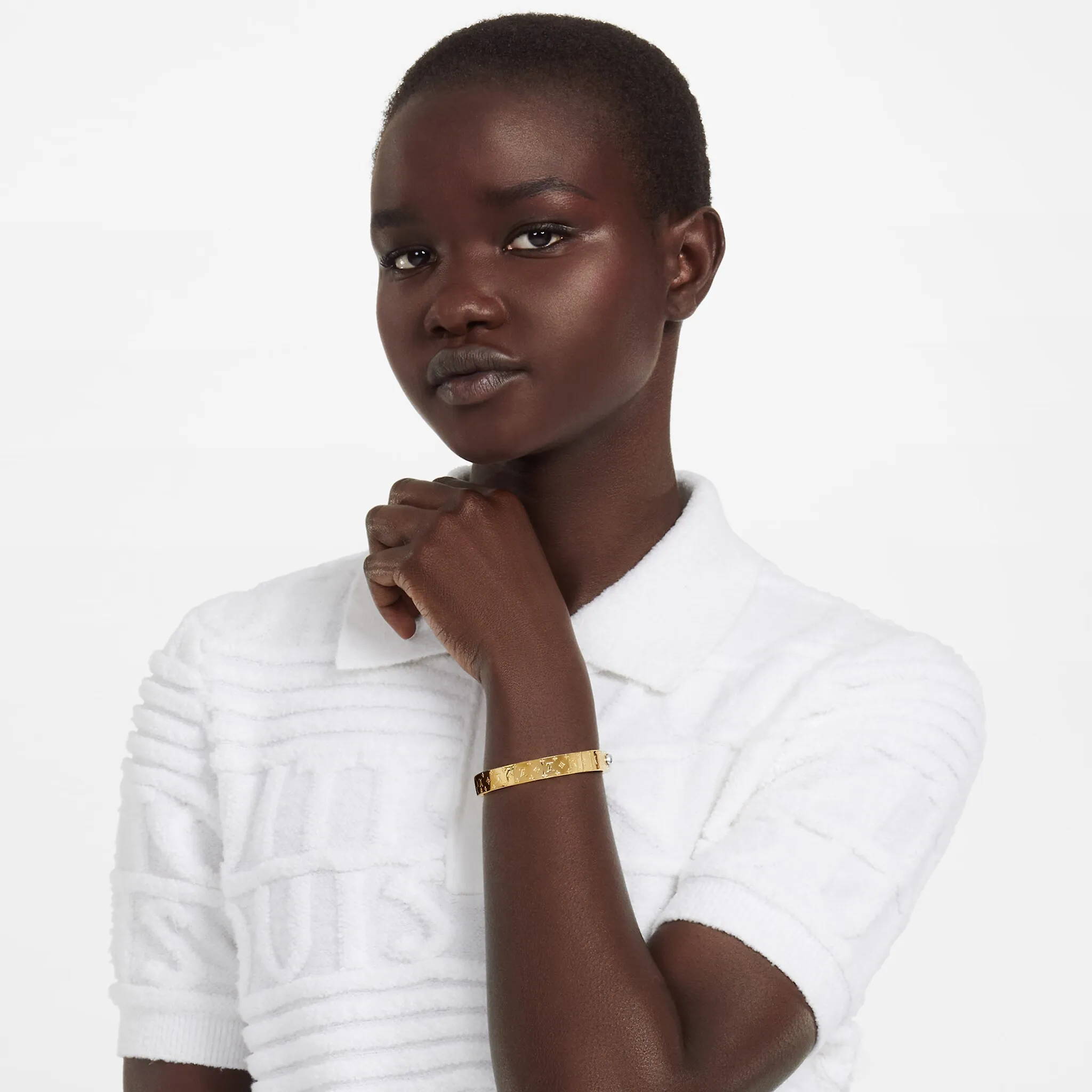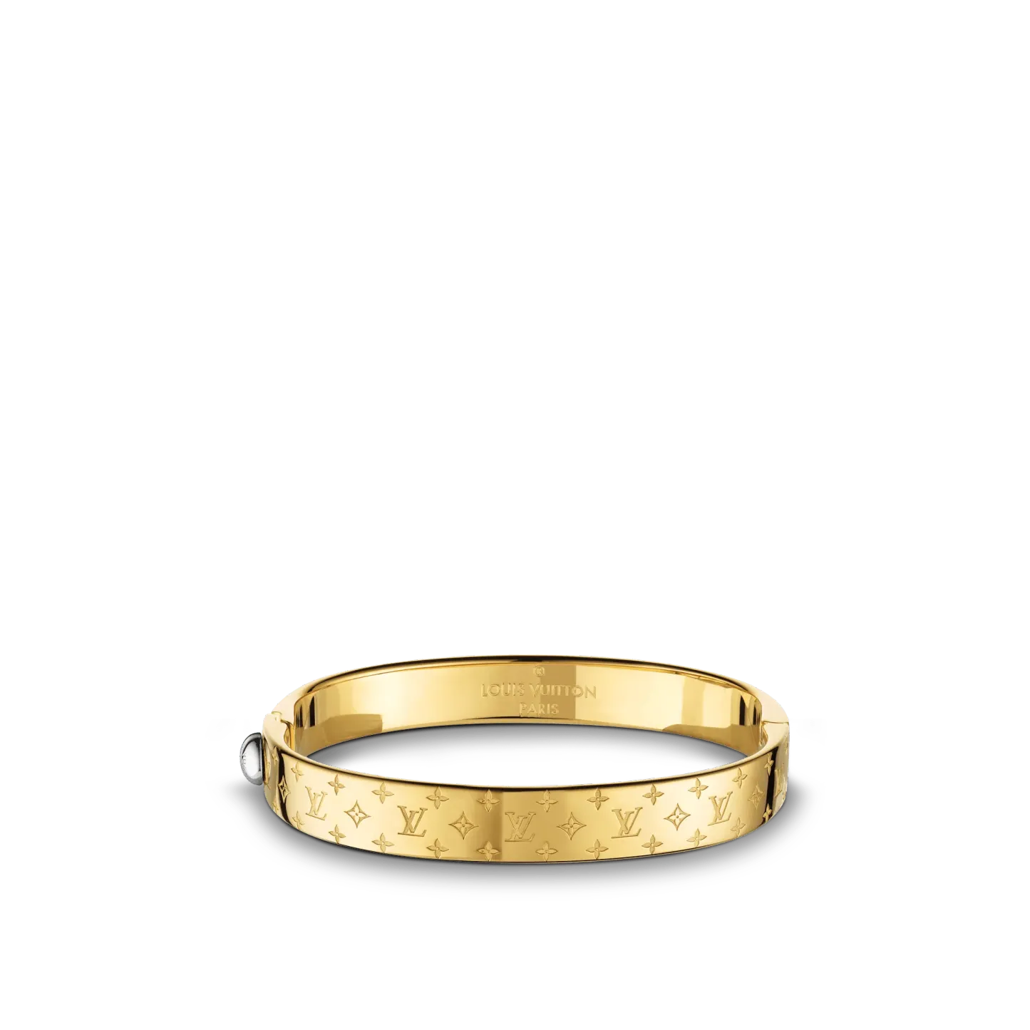 アイコニックなモノグラム・パターンと、ルイ・ヴィトンのシングルスタッズがあしらわれた「カフ・ナノグラム」。他と合わせたり、重ね付けも楽しめる、マストハブなアクセサリーです。