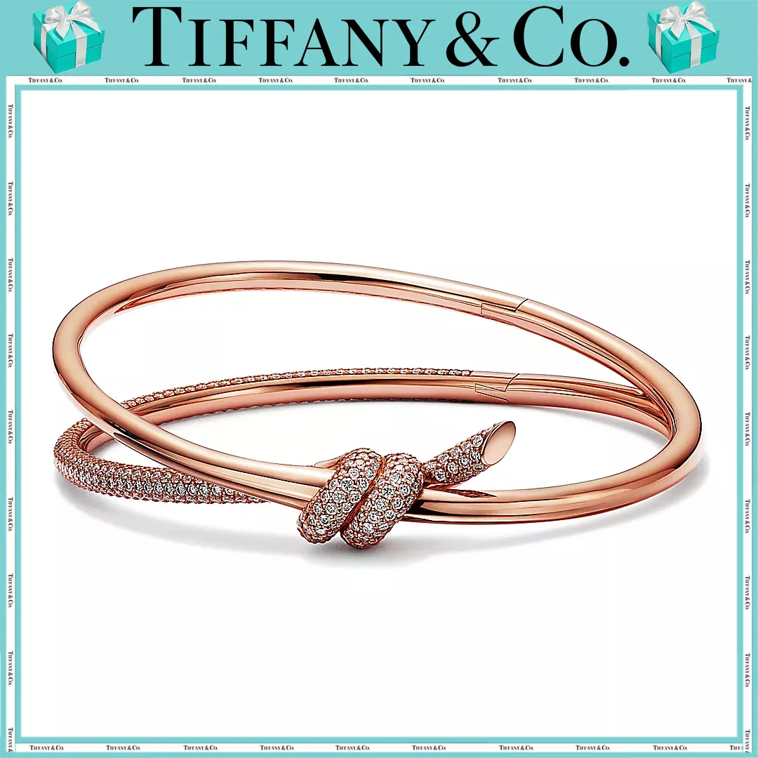 ティファニー ノットの特徴的なモチーフである絡み合う両端の部分は、人々を結びつける絆の力を象徴しています。強さとエレガンスが絶妙に調和したティファニー ノットのデザインは、卓越したクラフトマンシップの精緻な技巧の証です。艶やかなローズゴールドに光り輝くパヴェ ダイヤモンドがあしらわれたこのバングルは、手作業でひときわ美しい光沢に磨き上げられています。ティファニーの厳格な基準を満たすために厳選された、一つひとつのラウンド ブリリアント カット ダイヤモンドは、輝きを最大限に引き出すために手作業で精巧な角度にセッティングされています。単独で身につけても、クラシックなシルエットとの意外性のある組み合わせもお楽しみいただけるバングルです。
