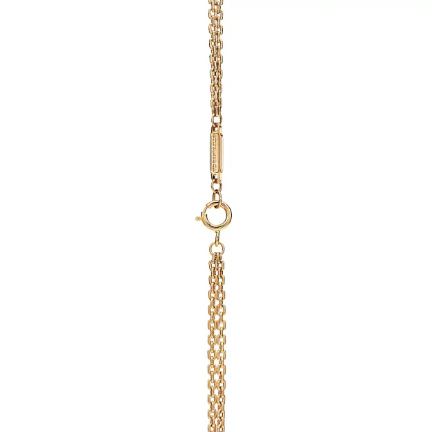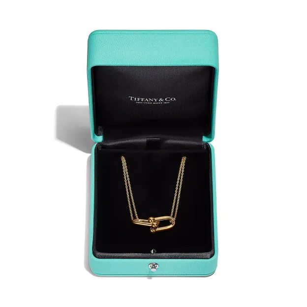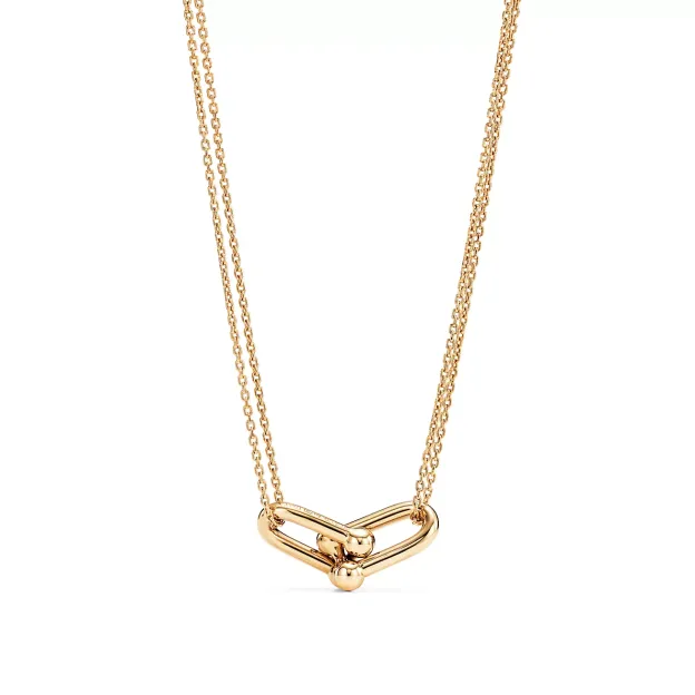エレガントに立ち向かうニューヨークの女性の精神を捉えたティファニー ハードウェア。斬新なゲージ リンクと繊細なチェーンが印象的なモダンなリンク ペンダント。