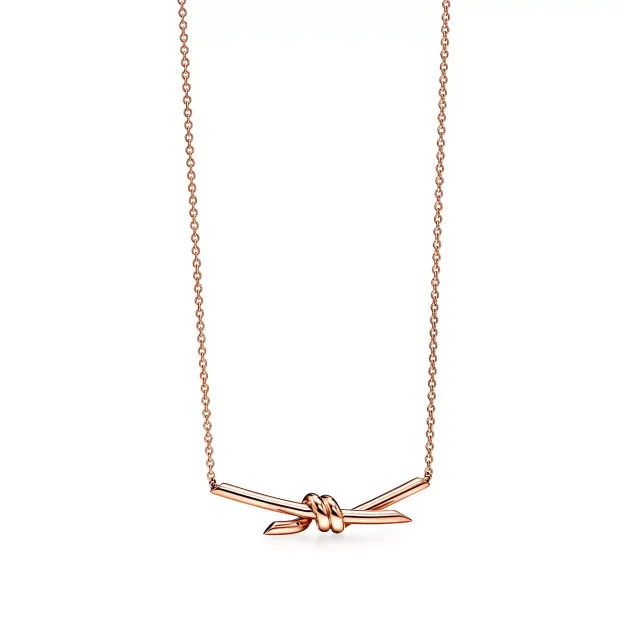 ティファニー ノットの特徴的なモチーフである絡み合う両端の部分は、人々を結びつける絆の力を象徴しています。強さとエレガンスが絶妙に調和したティファニー ノットのデザインは、卓越したクラフトマンシップの精緻な技巧の証です。艶やかなローズゴールドで作り上げられ、手作業でより一層美しい光沢に磨き上げられています。単独で身につけても、クラシックなシルエットとの意外性のある組み合わせもお楽しみいただけるペンダントです。