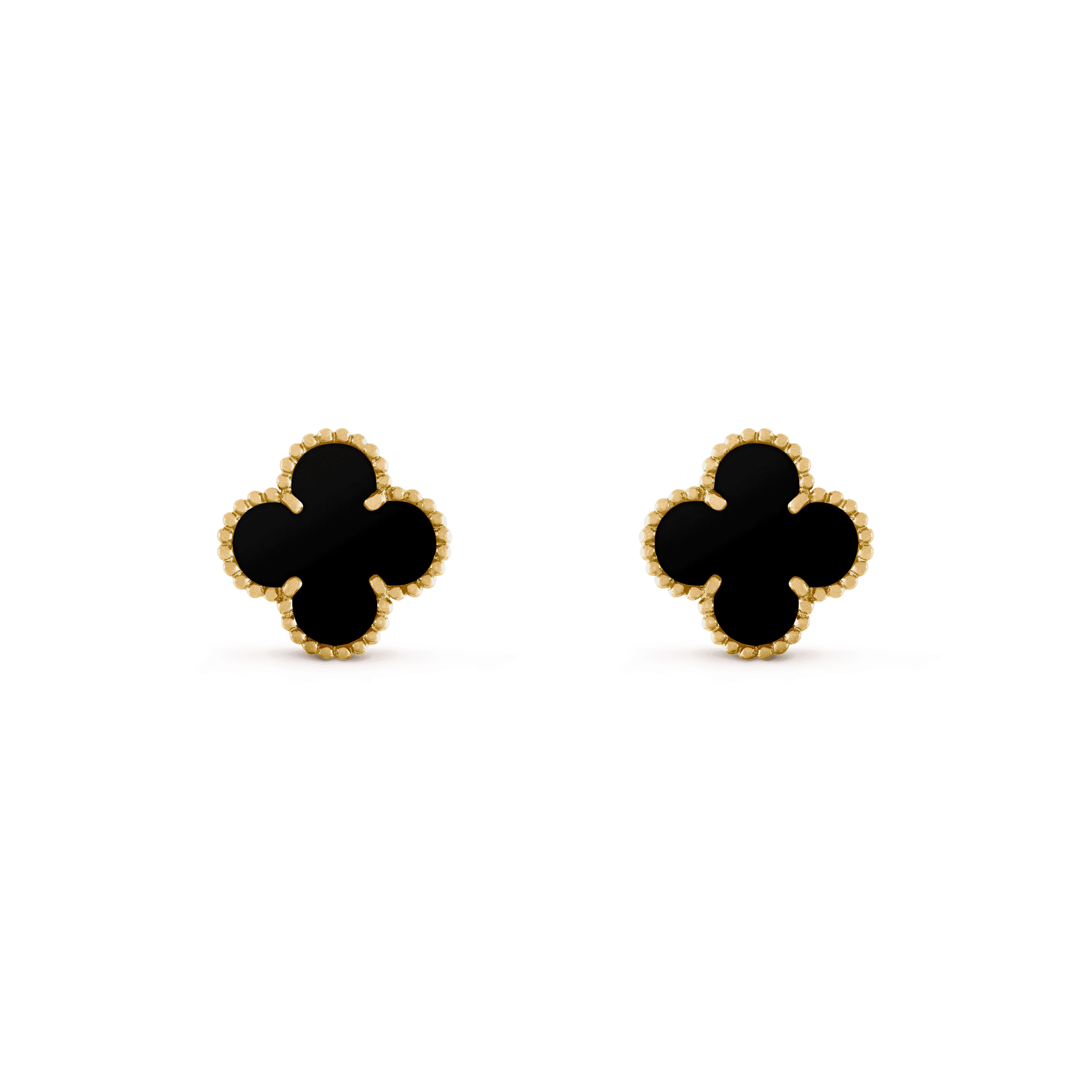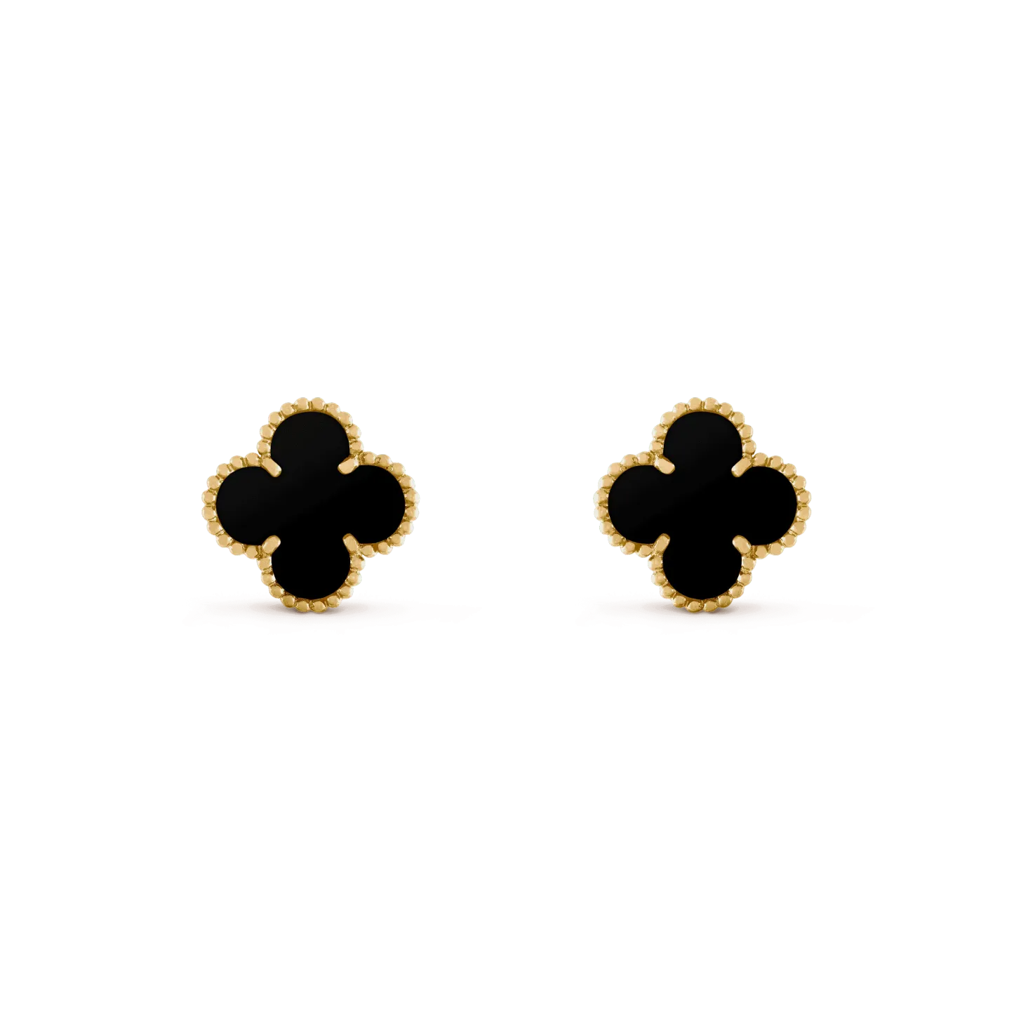 Van Cleef&ArpelsのVintageAlhambra®コレクションは、1968年の最初のアルハンブラジュエリーを忠実に再現し、一目で人々を魅了するユニークで時代を超越したエレガントなデザインを採用しています。 四つ葉の幸運のモチーフに触発されたこれらの幸運のシンボルは、イエローゴールドのビーズでトリミングされています。