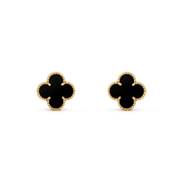 ヴィンテージアルハンブラピアス、イエローゴールド、瑪瑙。